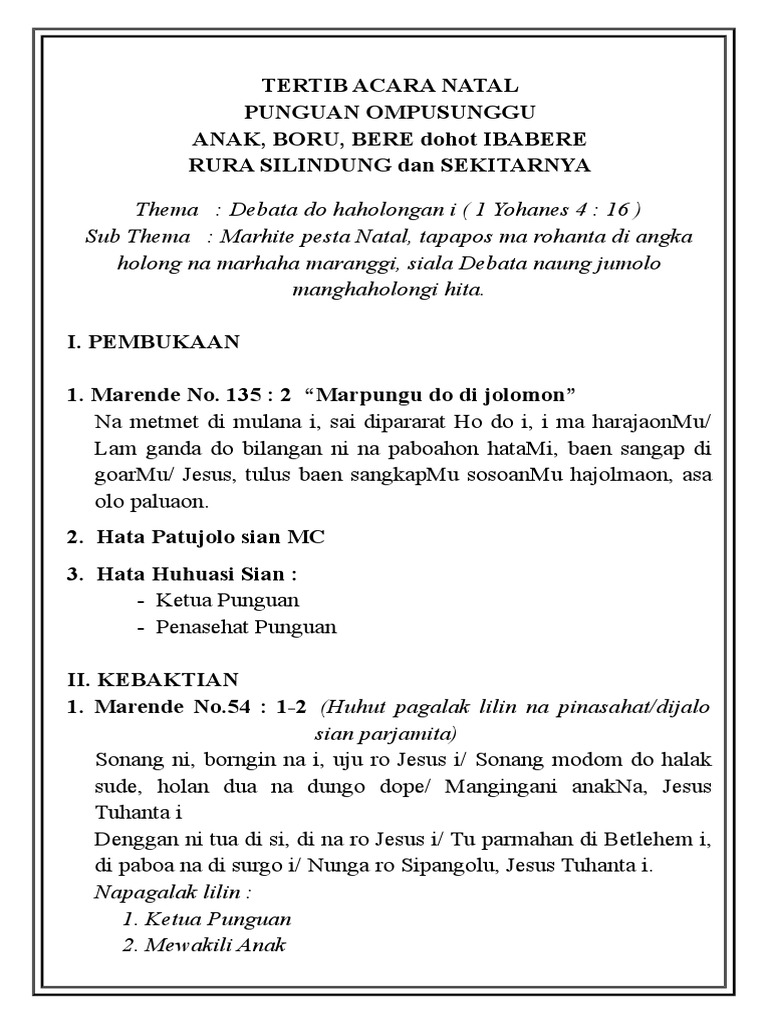 Contoh Mc Acara Natal : Kertas Acara Natal Rn 2019 Perayaan Natal Remaja Dan Naposobulung Hkbp Dame Minggu 15 Desember 2019 Tema U201cbersaksi Dalam Damai Dari Kristus U201d 2 Course Hero : Scopri ricette, idee per la casa, consigli di stile e altre idee da provare.. Entdecke rezepte, einrichtungsideen, stilinterpretationen und andere ideen zum ausprobieren. Scopri ricette, idee per la casa, consigli di stile e altre idee da provare.